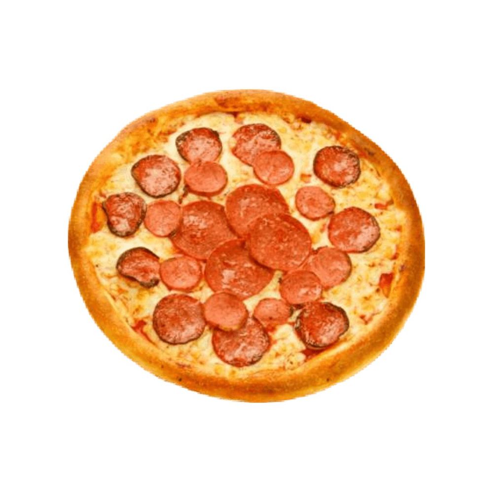 В составе: Тесто для пиццы, соус для пиццы, сыр моцарелла, мусульманская колбаса, говяжьи сосиски, сливочное масло