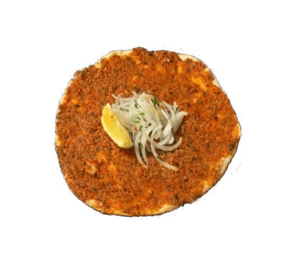 В составе: Тонкая турецкая лепешка запеченная с фаршем и баранины со специями, подается с луком, зеленью и с долькой лимона, смазанное сливочным маслом