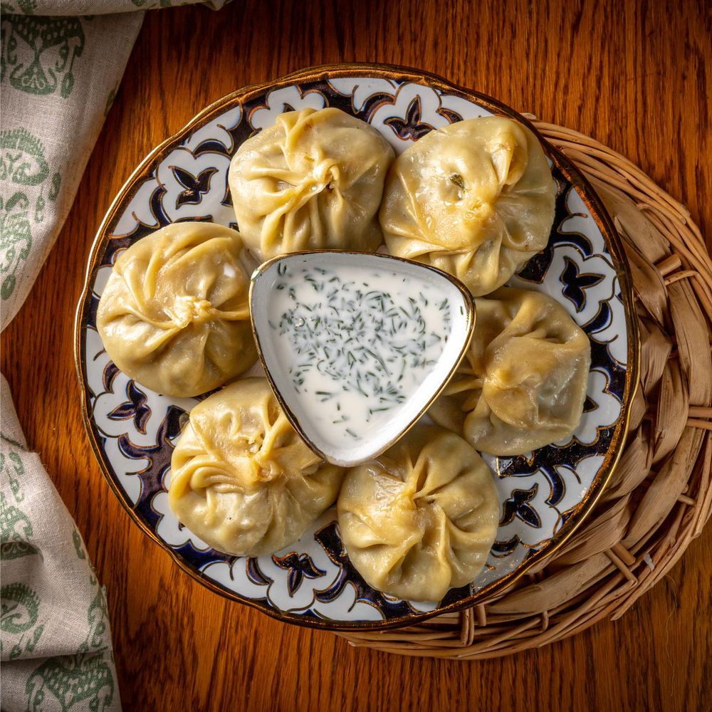 С любовью приготовленное тесто,и мякоть говядины,рубленная с луком и курдюком и тыквой.Подаем с йогуртово-чесночным соусои и укропом. 400гр.