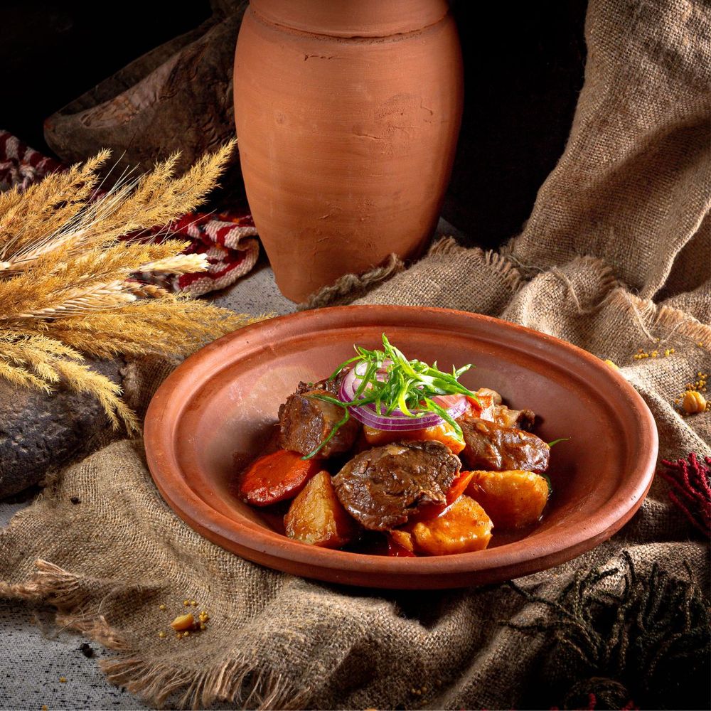 Необычное блюдо из овощей и мяса в тандыр кувшине 630 гр