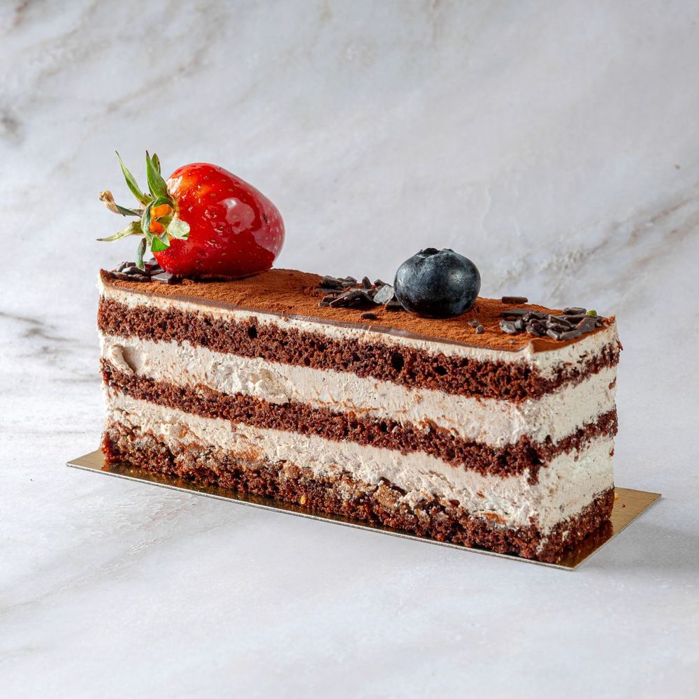 В составе: бисквит шоколадный, шоколадный крем, какао, ягодный декор