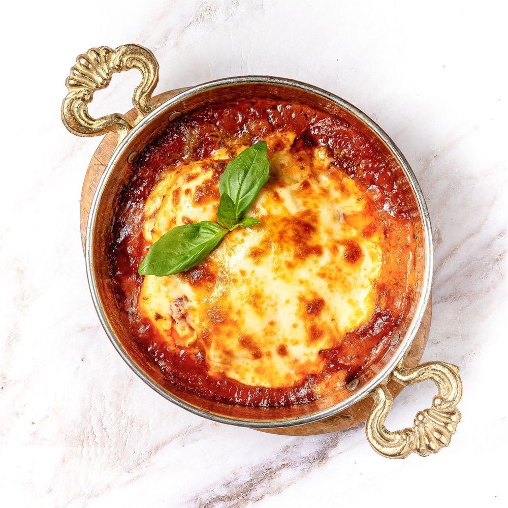 Паста барилла, соус болоньезе, соус бешамель, сыр моцарелла, соус песто, свежий базилик 380 гр