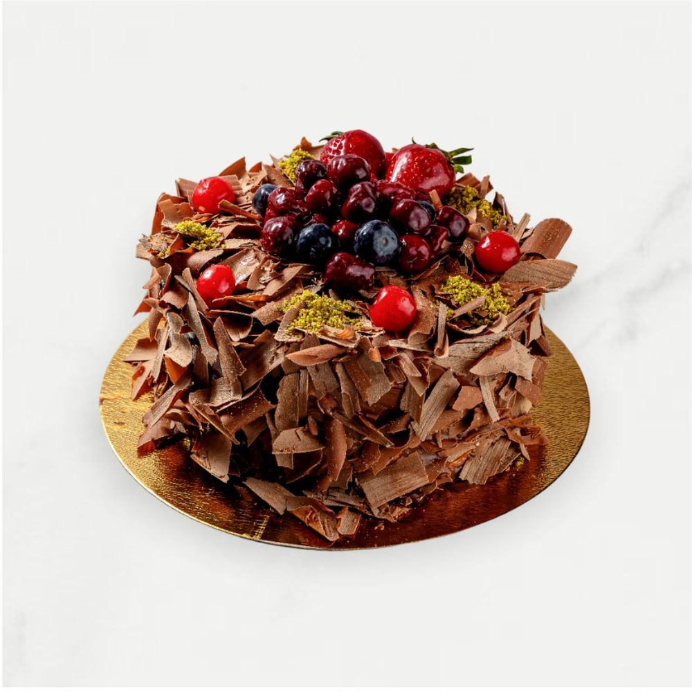 В составе: Шоколадный бисквит, шоколадный ганаш, виневая начинка, шоколадный ганаш