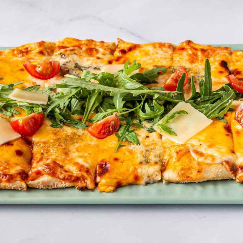 Пицца соус, соус песто, сыр моцарелла, чеддер, дор-блю, брынза, пармезан, руккола, оливковое масло 420 гр