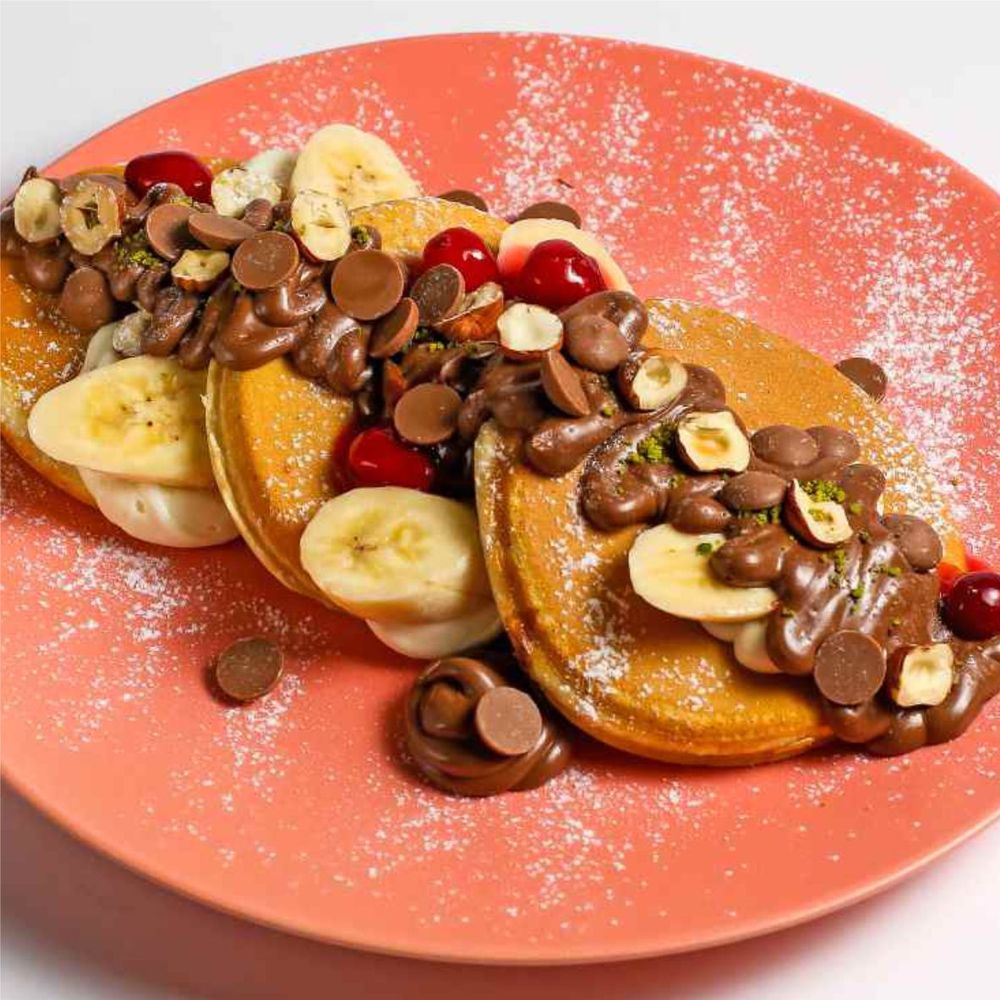 Панкейк, заварной крем, банан, паста нутелла, клубника 180 гр