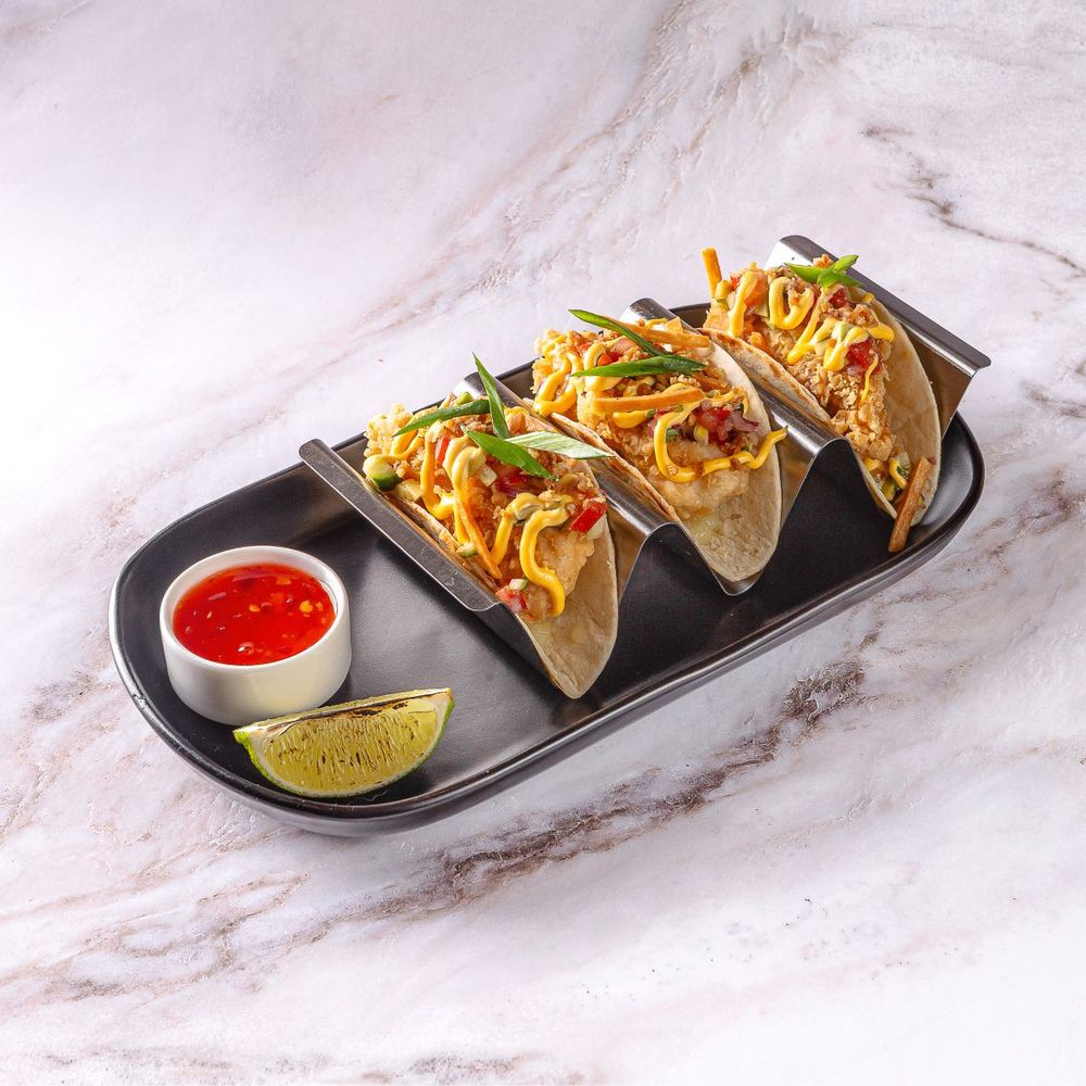 Лепешки тортильи с начинкой из маринованной курицы, корнишон, хрустящего лука, зелени, гуакамоле, специй и соуса 370 гр
