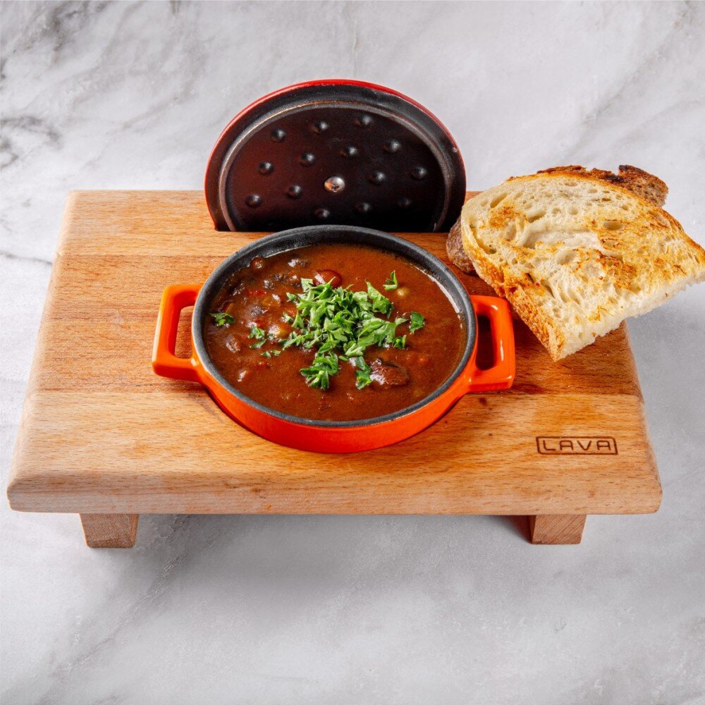 Нежное филе телятины, лук, томатный соус, мелко рубленные овощи, специи, укроп, петрушка, ассорти хлеба, колбаса, чернослив 380 гр